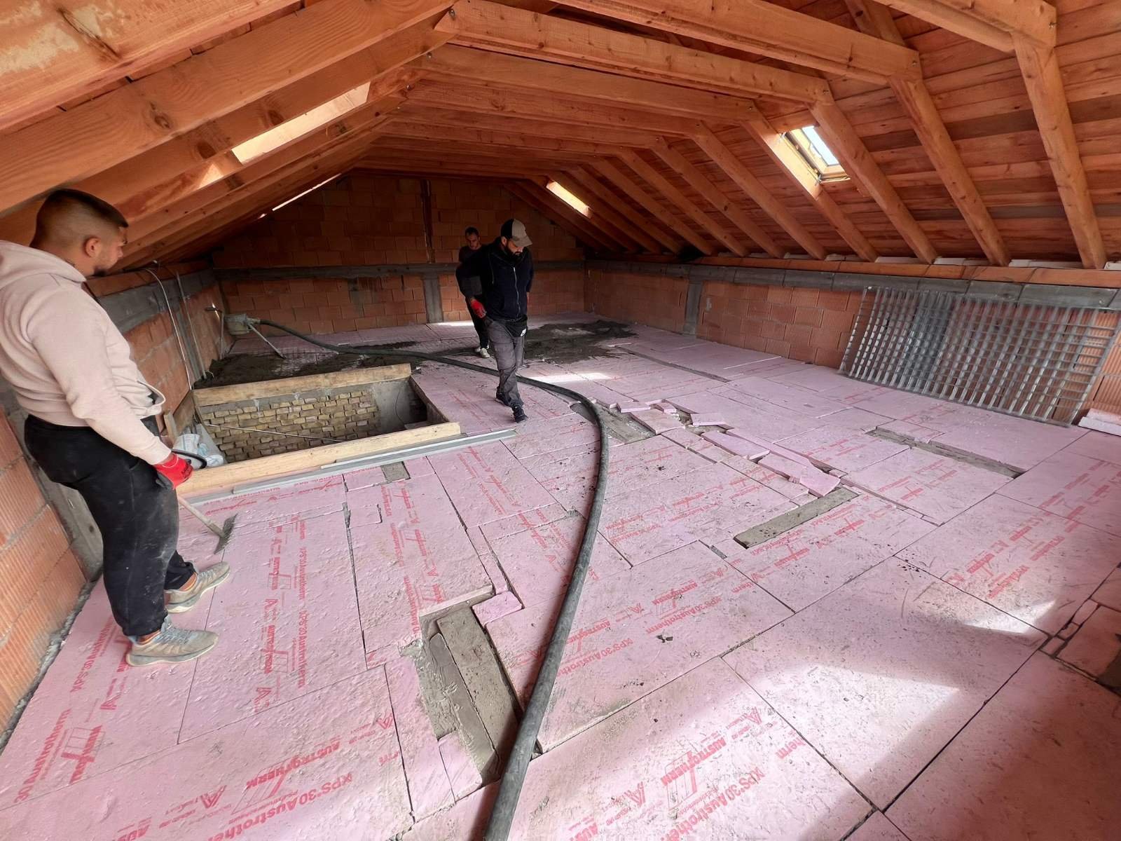 Използваме специализирани машини за бързо и ефективно полагане на замазка, което осигурява гладка и равна основа за последващи настилки.