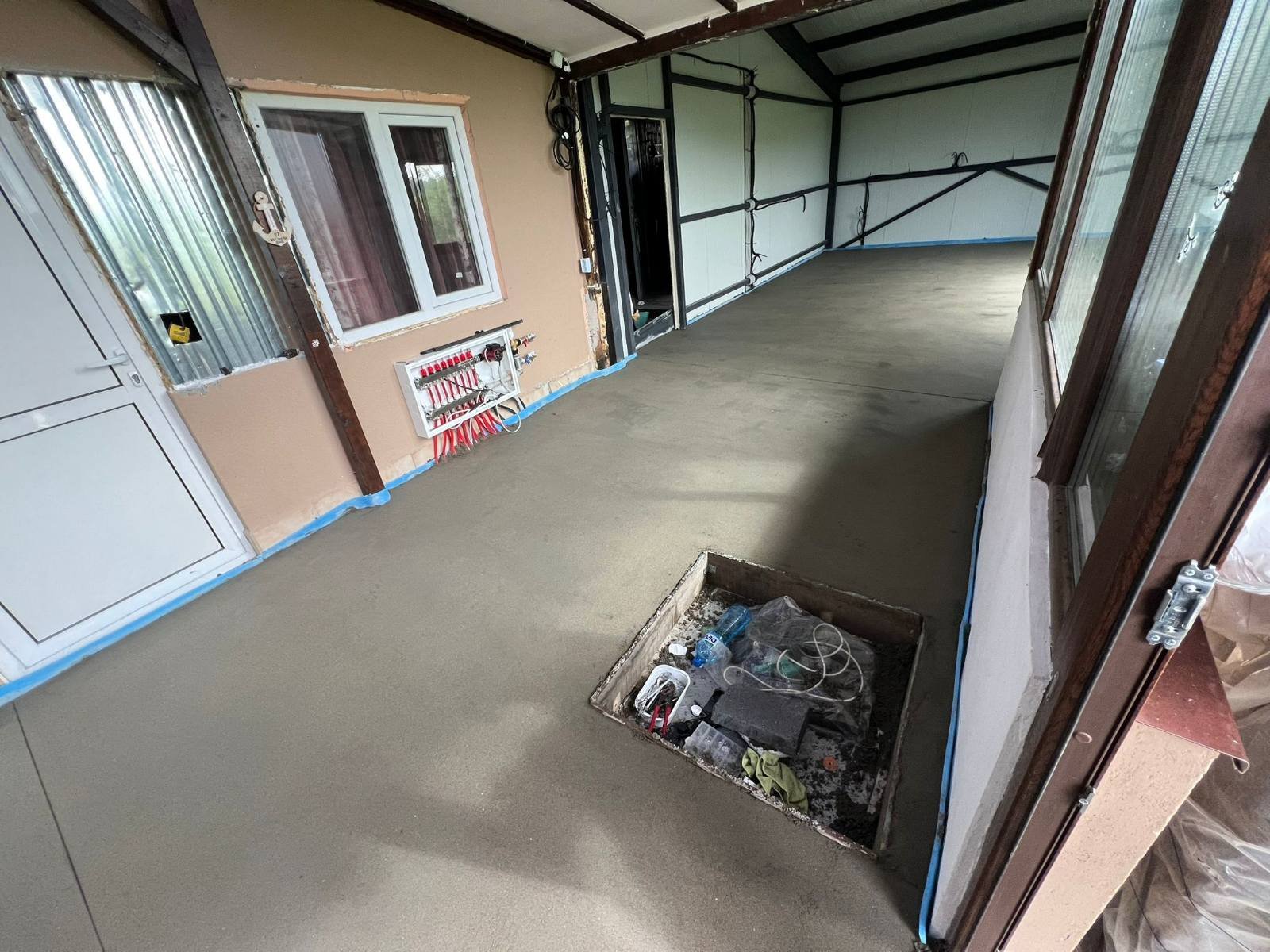 Машинната замазка е високо ефективна и може да се прилага върху големи площи за кратък период, като осигурява равна и стабилна основа, готова за полагане на подови настилки без допълнителни корекции.